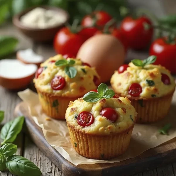 Inspirados en la clásica ensalada italiana. Con muzzarella, tomates cherry y albahaca, estos muffins combinan lo mejor de lo mediterráneo en versión keto.
